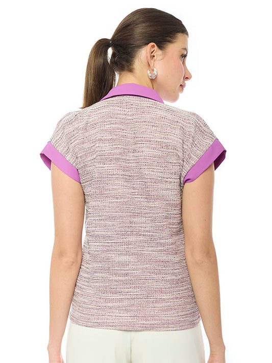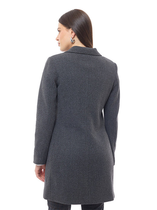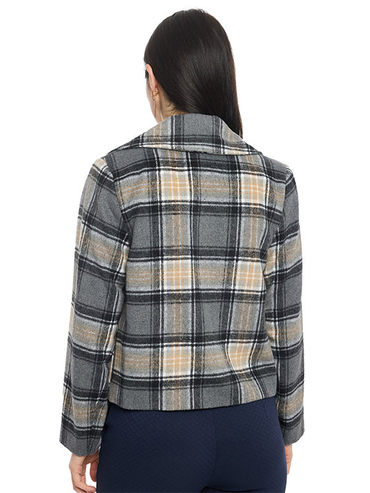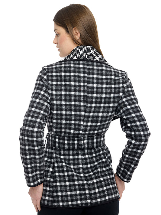 Abrigo Corto Estampado a Cuadros con Doble Cruce
