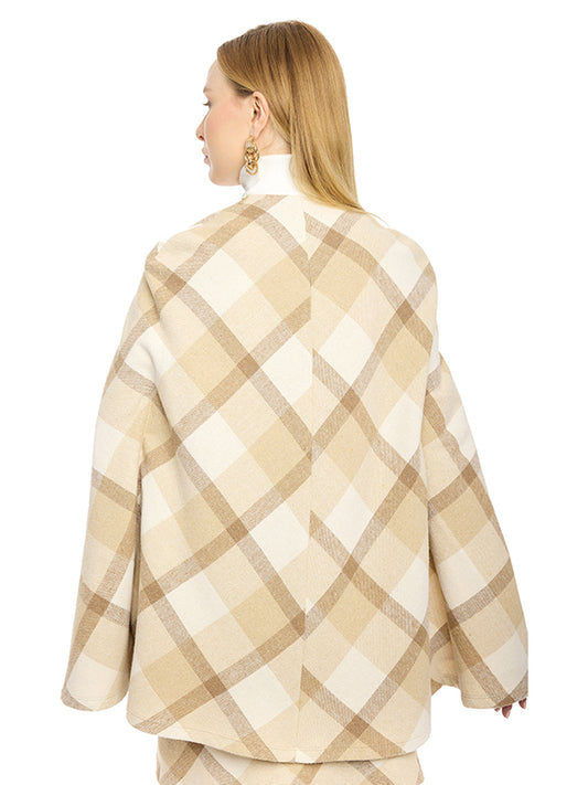 Abrigo Poncho Tafetán Preteñido a Cuadros