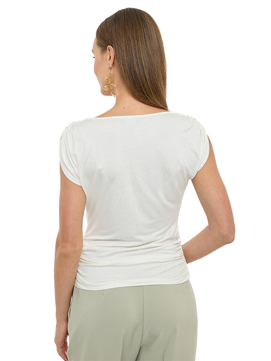 Blusa Hombro Prolongado con Escote Hamaca y Pliegues Laterales