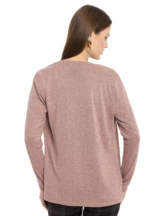 Blusa de Jersey Lisa con Cuello Redondo, Manga 3/4 y Detalle Aplicado