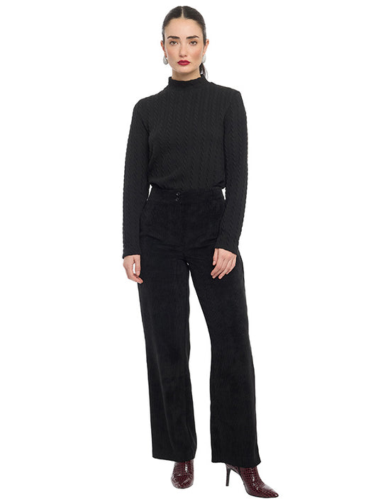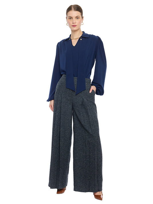Pantalón Pierna Amplia con Tablas Frontales