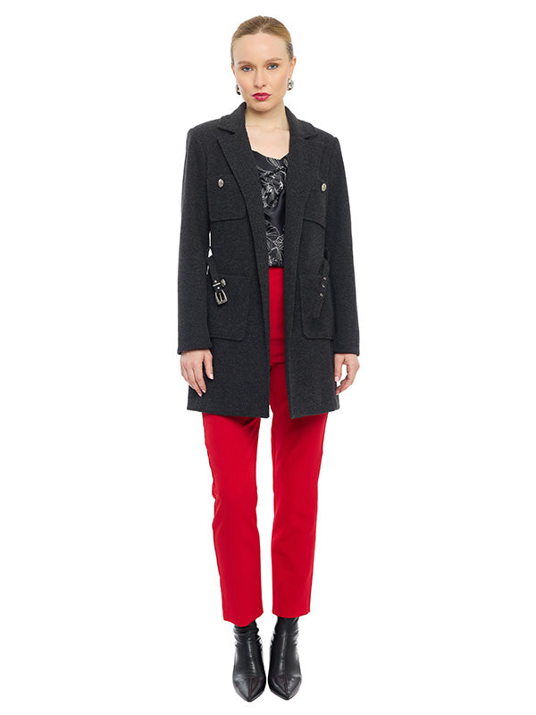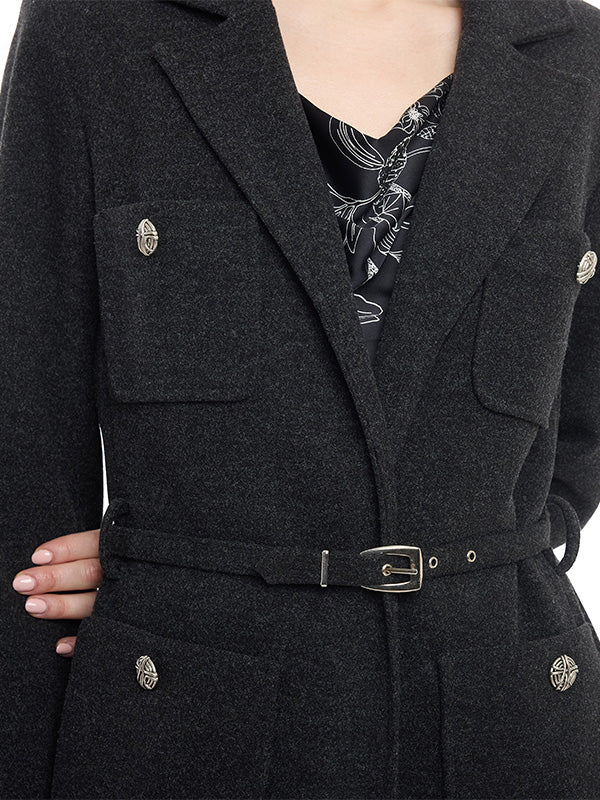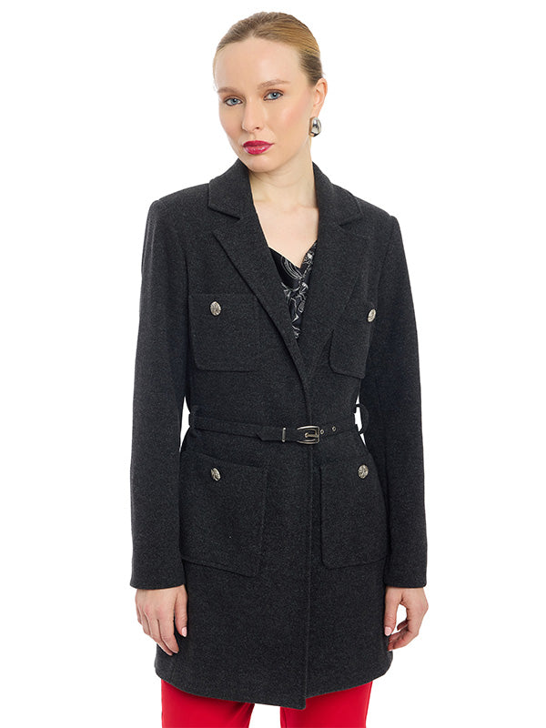 Abrigo Largo Con Cinturón Y Bolsas De Parche