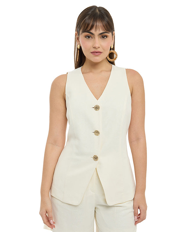 Chaleco Largo Asiluetado con Abertura en Ruedo Delantero