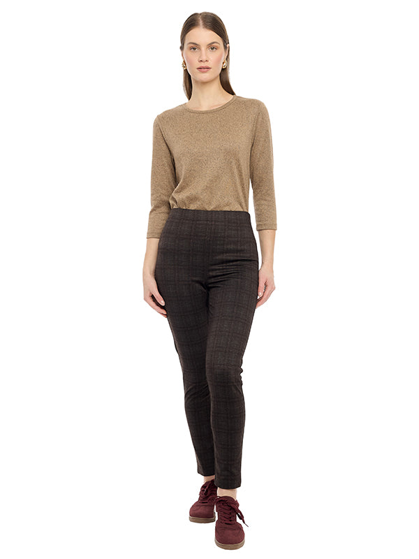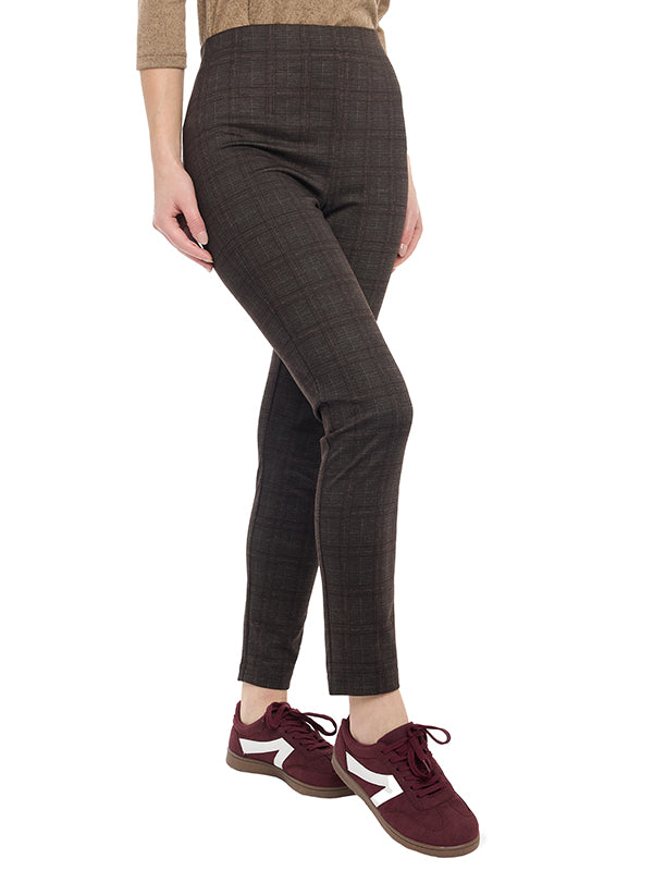 Pantalón de material super ponti, cómodo y elástico. Con estampado de cuadros, pinzas que estilizan la silueta, cintura media y pierna skinny, combina estilo y ajuste perfecto. Ideal para looks casuales y formales, un básico moderno para tu guardarropa.