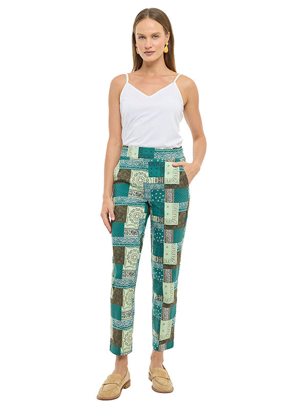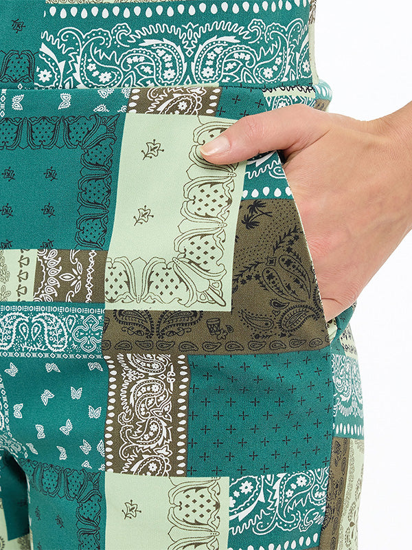 Pantalón para mujer confeccionado en material bengalina con elegante diseño estampado paisley que aporta un estilo sofisticado y moderno. Su silueta con pinzas y corte de cintura alta estilizan la figura, mientras que la pierna recta brinda un acabado clásico y versátil. Incluye bolsas funcionales que añaden practicidad sin perder elegancia.