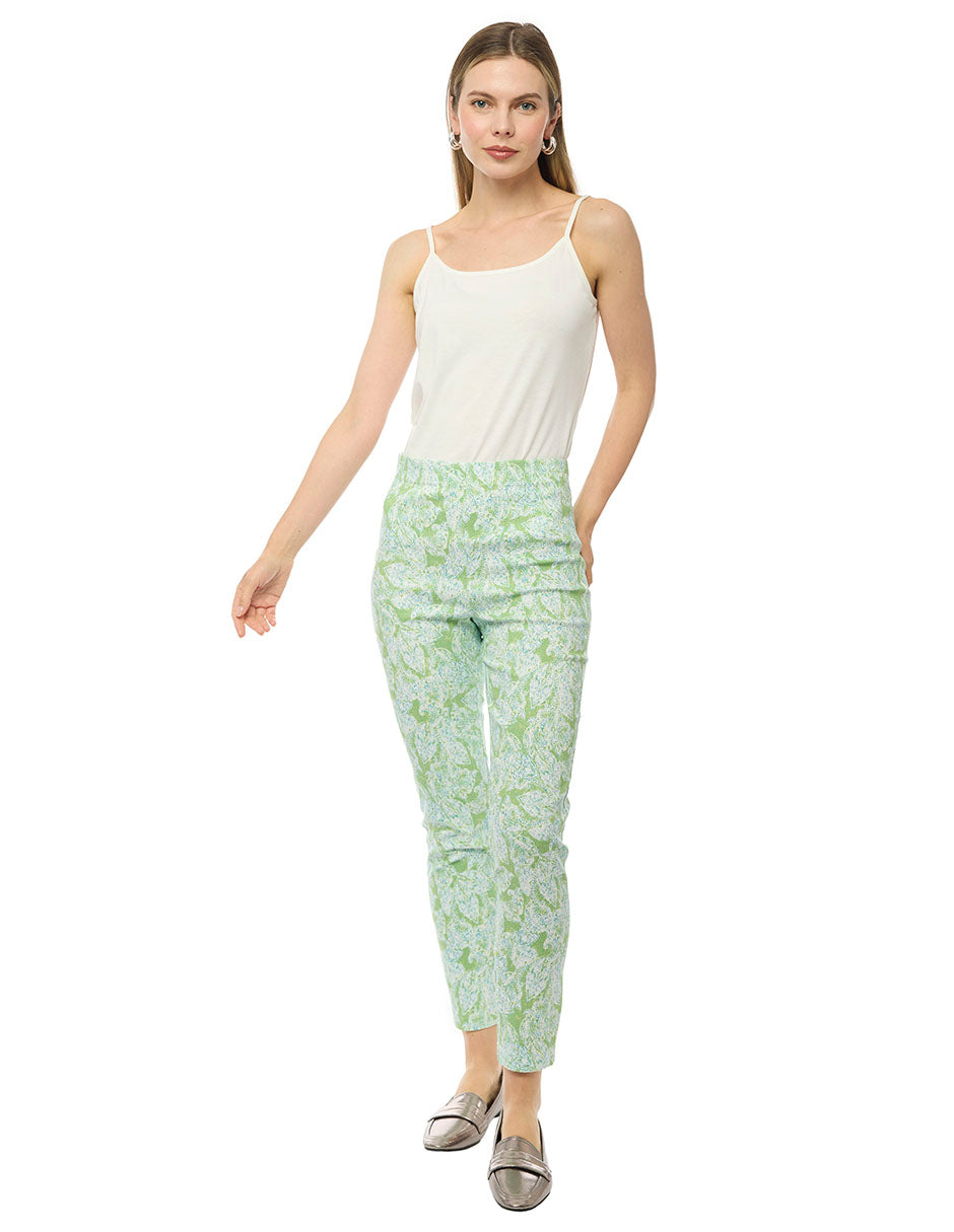 Pantalón confeccionado en un tejido de bengalina, que ofrece una mezcla perfecta entre elasticidad y comodidad, permitiendo un ajuste ceñido sin sacrificar confort. Presenta un diseño estampado floral vibrante que aporta un toque moderno