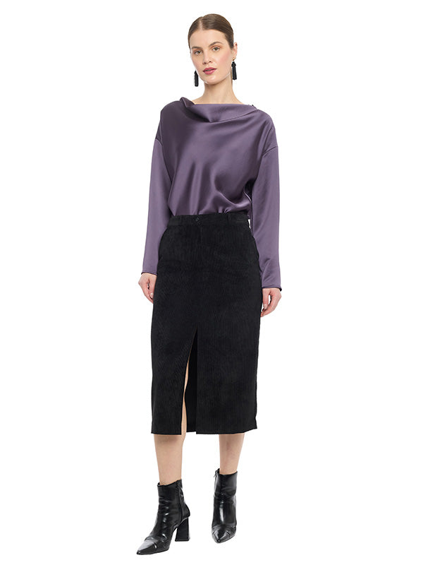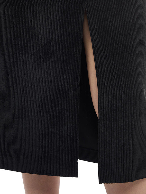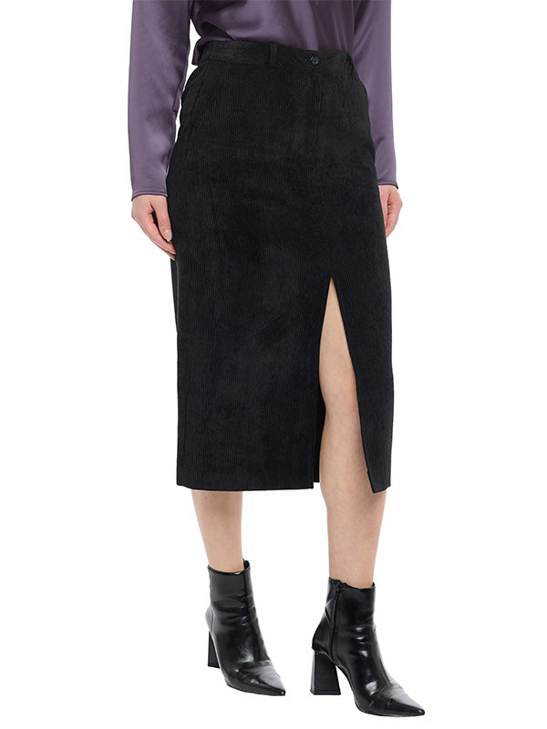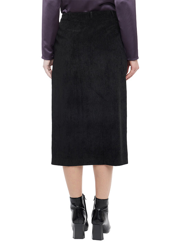 Falda Midi de Pana con Pretina y Abertura Delantera