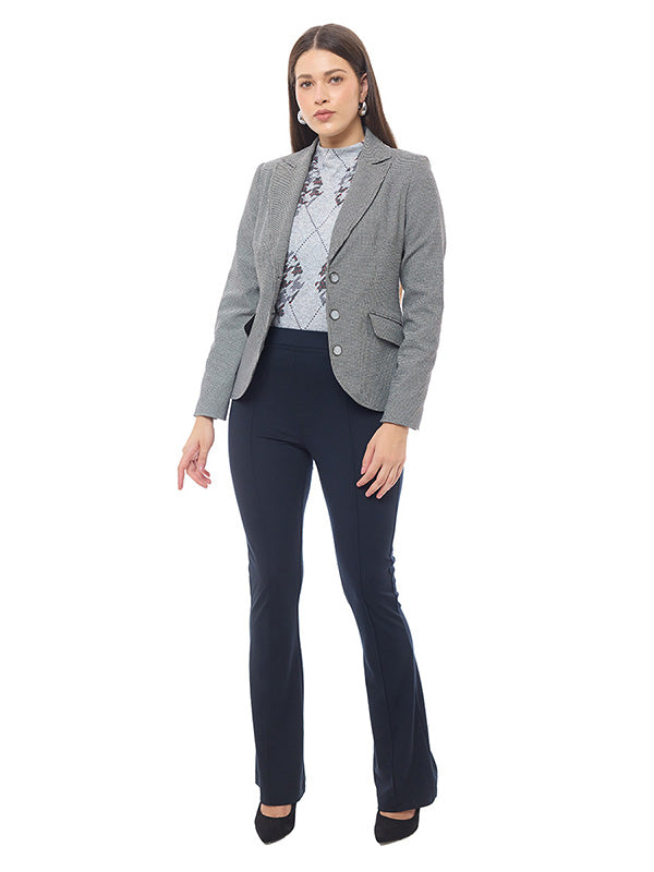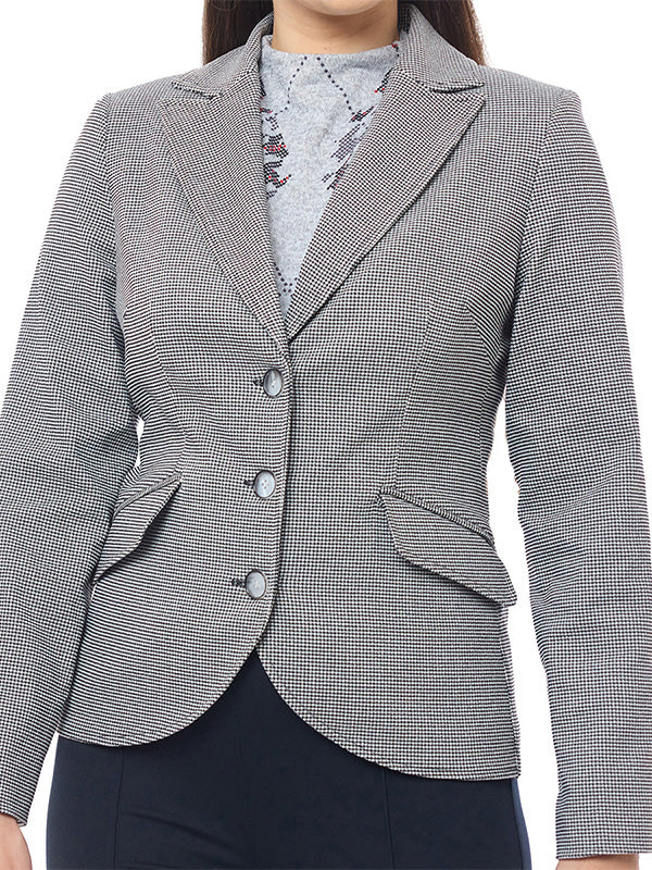 Saco de silueta recta confeccionado en tafetán con estampado clásico de pata de gallo, ideal para un look elegante y atemporal. Presenta manga larga, largo medio y cierre frontal con botones, brindando estructura y estilo. El interior cuenta con forro liso que aporta confort, mientras que su nivel de calentamiento medio lo hace perfecto para días frescos.