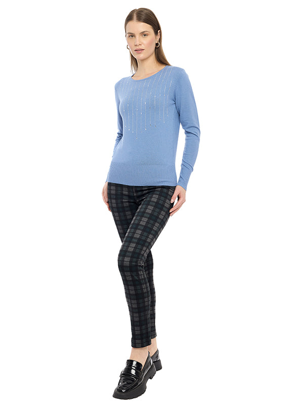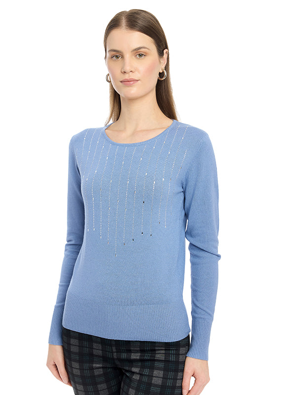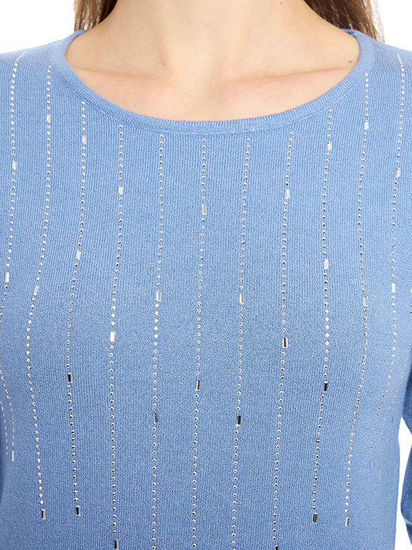 Suéter de Jersey Liso con Cuello Redondo y Manga Larga