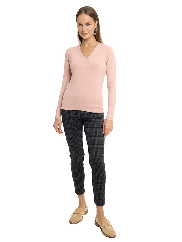 Suéter Jersey Liso con Cuello en V y Manga Larga