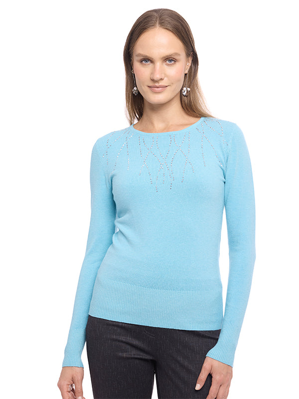 Suéter Jersey Liso con Cuello Redondo, Manga Larga y Transfer