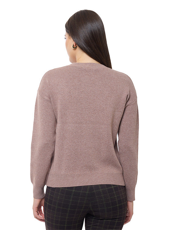 Suéter Jersey Liso de Cuello Redondo y Manga Larga
